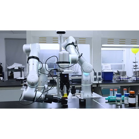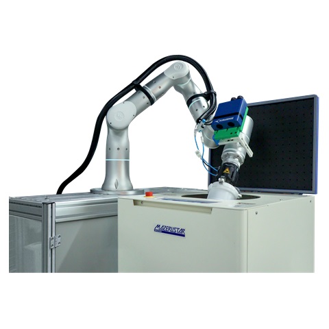 撹拌機に容器を自動投入する様子
